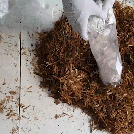 Con un objeto filoso (cuchilla) realiza un corte a la bolsa para exponer el sustrato al oxígeno del aire y poder atomizarle agua directamente.