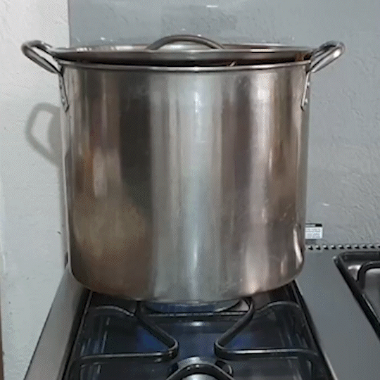 - Coloca la olla en la estufa con fuego medio y lleva a ebullición. Mantén hirviendo durante 2 horas.